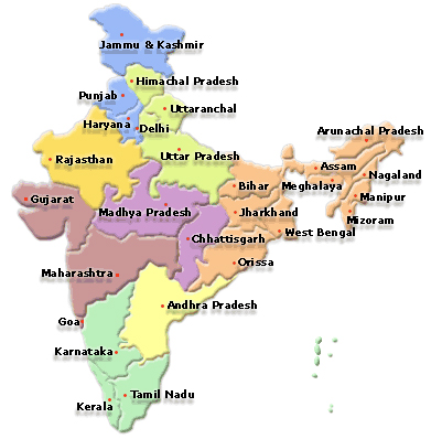 Indian States : India is a federal union of states comprising 28 states and 7 union territories. The states and territories are further subdivided into districts and so on.